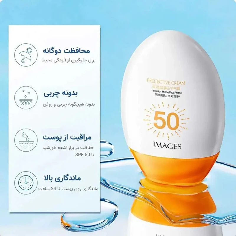 حاوی کلاژن و جوان ساز جذب سریع،حاوی آنتی اکسیدان بدون ایجاد حس سنگینی و چربی مات کننده، آبرسان و مغذی پوست دارای PPD25 جلوگیری از پیری پوست مناسب پوست های چرب و دارای جوش